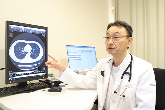 肺を輪切りにした断層画像を撮影することで、胸部エックス線検査では見つけにくいごく初期の小さな肺がんや、心臓の陰に隠れたがんも詳細に確認できます。肺がん以外にも、肺炎、肺気腫、肺結核などの発見にも有用です。肺がん検診で要精検等のかたもご相談ください
