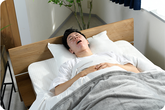 「睡眠時無呼吸症候群(SAS)」は、睡眠中に何度も呼吸が止まってしまう病気です。息が止まると眠りの質が低下して、日中の眠気や倦怠感などから日常生活に支障をきたします。さらに、糖尿病、高血圧症などにも影響し、心臓、脳などが酸欠状態になることで、脳卒中、狭心症、心筋梗塞などのリスクも高くなります。気になる症状がある場合は、早めにご相談ください。