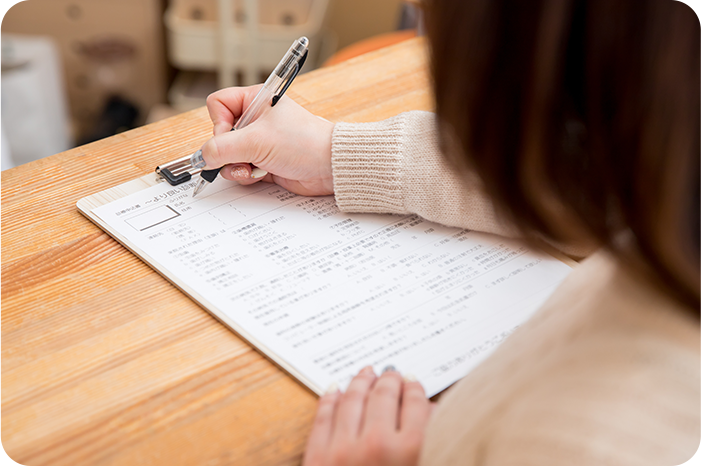 初診の際は、問診票のご記入をお願いしておりますので、時間に余裕を持ってお越しください。来院されましたら、受付に保険証などの提出をお願いいたします。